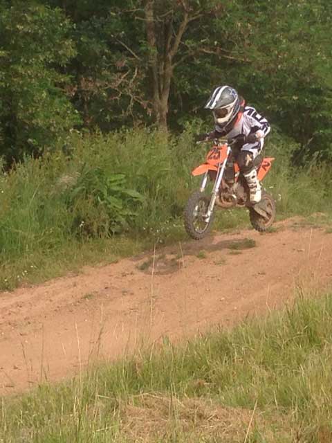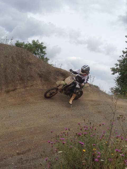 Selbst das Steuer in der Hand hatte ich dann endlich bei einem Elektro-Quad, das ich aber schnell an seine Grenze brachte und so stieg ich noch mit 5 Jahren auf meinen ersten kleinen Verbrenner um: ein 7,5PS Motorrad. Meine Eltern merkten, dass ich eine weitere Herausforderung mit dem Fahren verbinden wollte und meldeten mich ein Jahr später im Motorcross Verein in Wolfshausen an und so wurde noch vor dem ersten Schuljahr aus meinem Hobby ein Wettkampfsport.